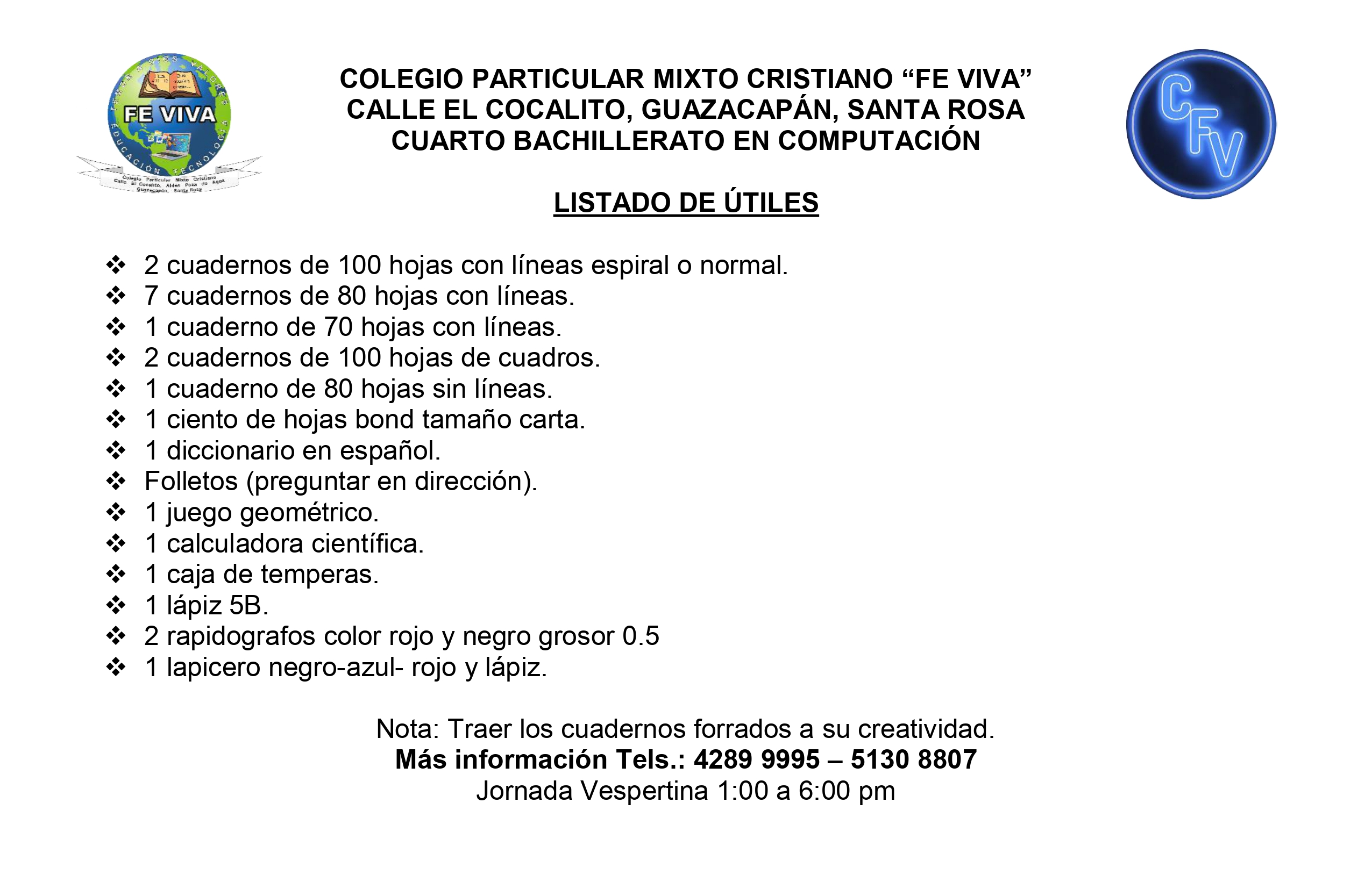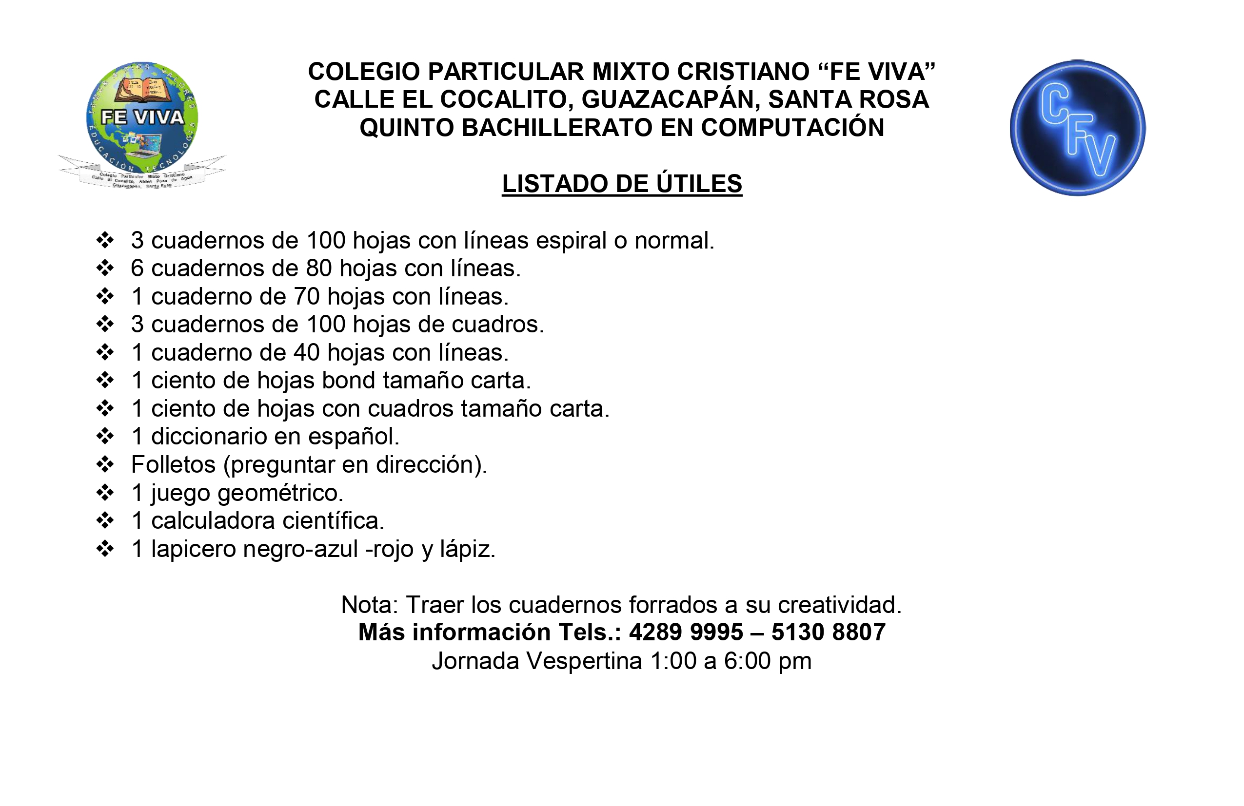 - Bachillerato en Ciencias y Letras con Orientación en Computación. 4TO. 5TO.