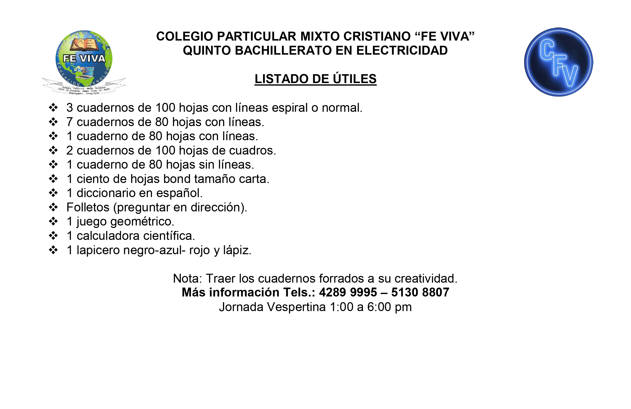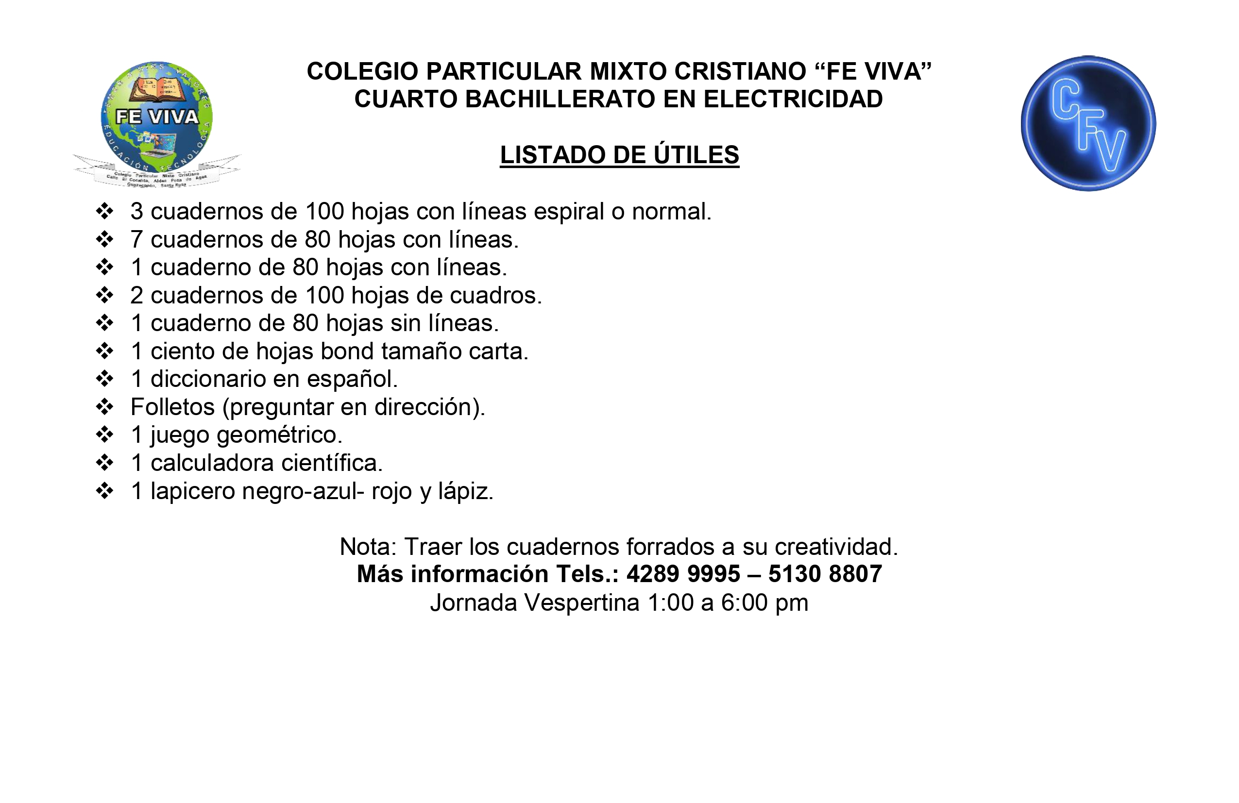- Bachillerato en Ciencias y Letras con Orientación en Electricidad. 4TO. 5TO.