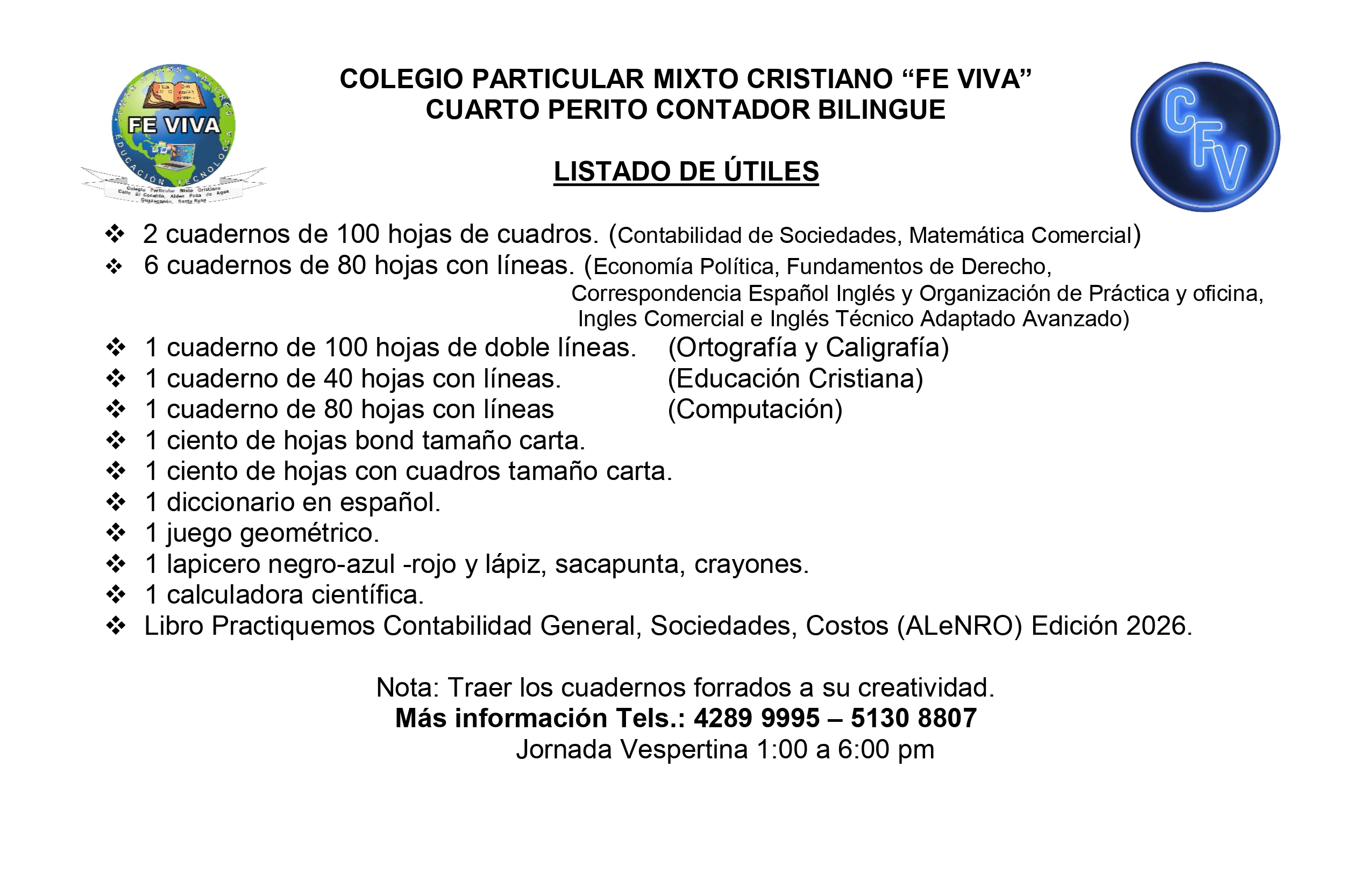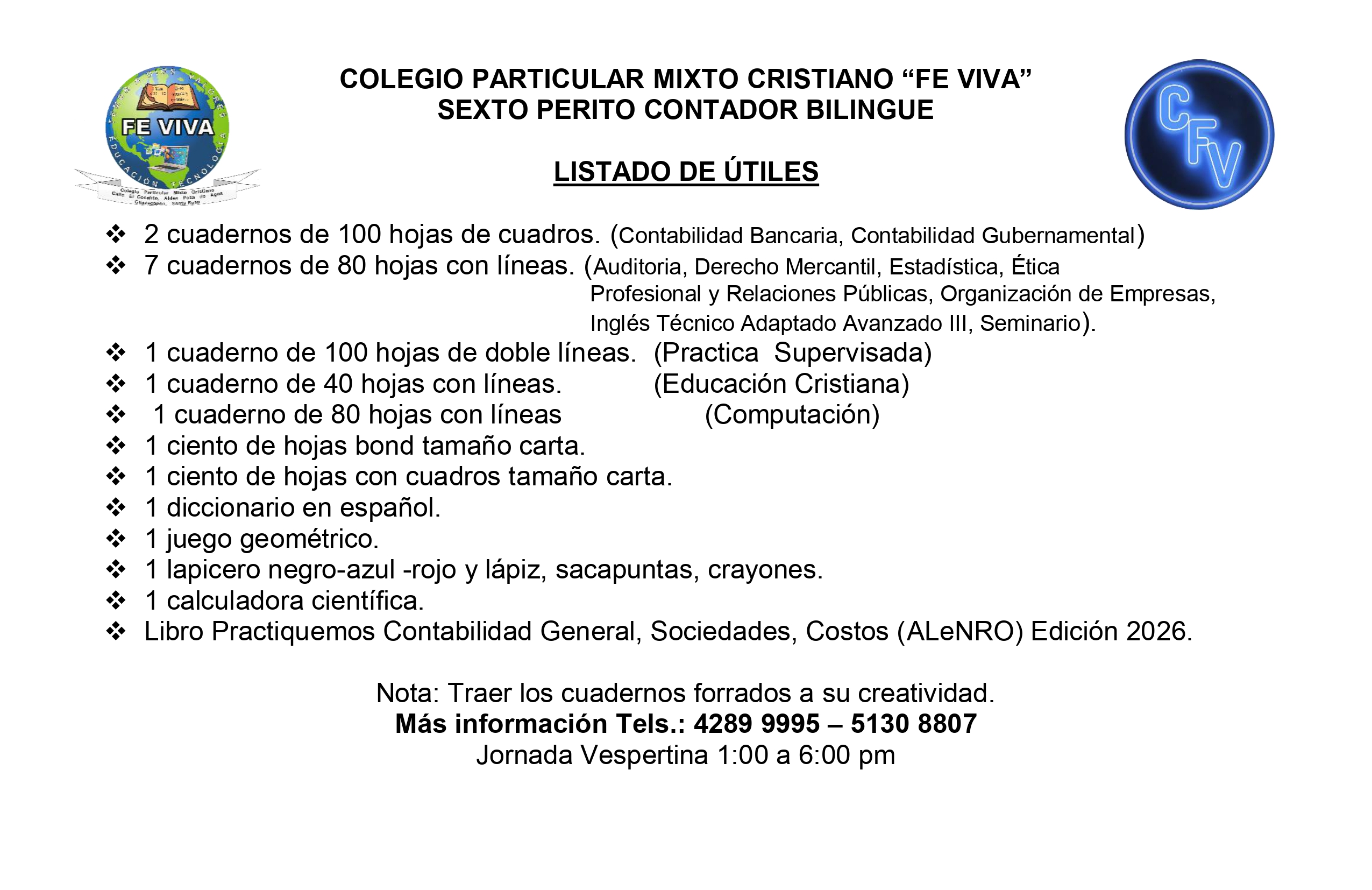 - Perito Contador Bilingüe (Inglés-Español). 4TO. 5TO. 6TO.